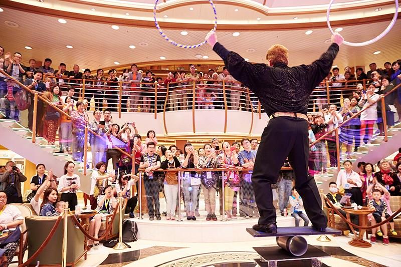 Enjoy live music, folkloric performances, acrobats and jugglers, even cocktail and food carving demonstrations. Plus, you'll find great shopping, gourmet treats in the International Café, bars, and more great cruise entertainment only a few steps away.