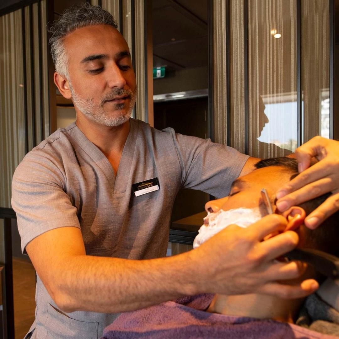 Our on board therapists provide ultra-luxury spa and hair salon treatments# to keep you looking and feeling your very best. Visit the hair salon for a treatment and style or enjoy a manicure and pedicure. Gentlemen, treat yourself to a beard-trim or shaving service.